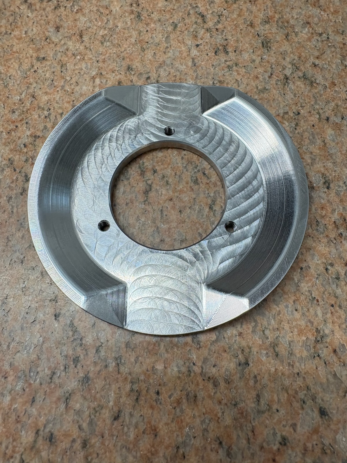 Custom CNC machined weld in filler panel for billet fuel filler cap w/cap included. Cut out bed with a 4 1/2" hole saw and weld in. Follows the contour of the metal bed floor perfectly.