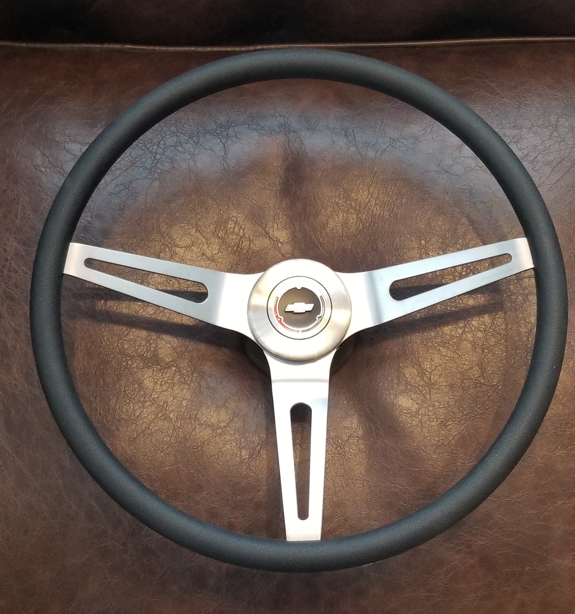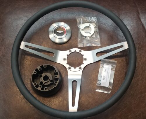 Switch over your 67-72 Chevy or GMC truck from the big 17" steering wheel over to these 15" Comfort Grip wheel kits. Gain some extra room, and a whole lot of style. Kits come with wheel, hub, horn cap, horn contact plate, wheel to hub screws and contact plate screws. Fits 67-72 Chevy, GMC, Pickups,
