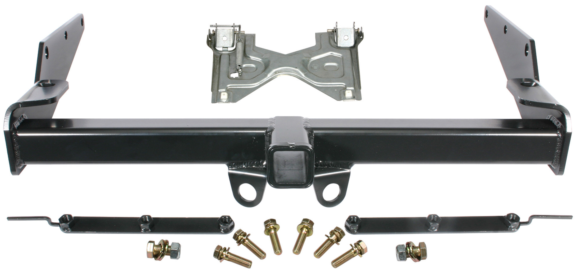 Hides platform hitch out of sight behind the license plate. Complete with hardware. For use with stock bumper, will not work with roll pans. Will not fit leaf spring trucks. For coil spring trucks only.